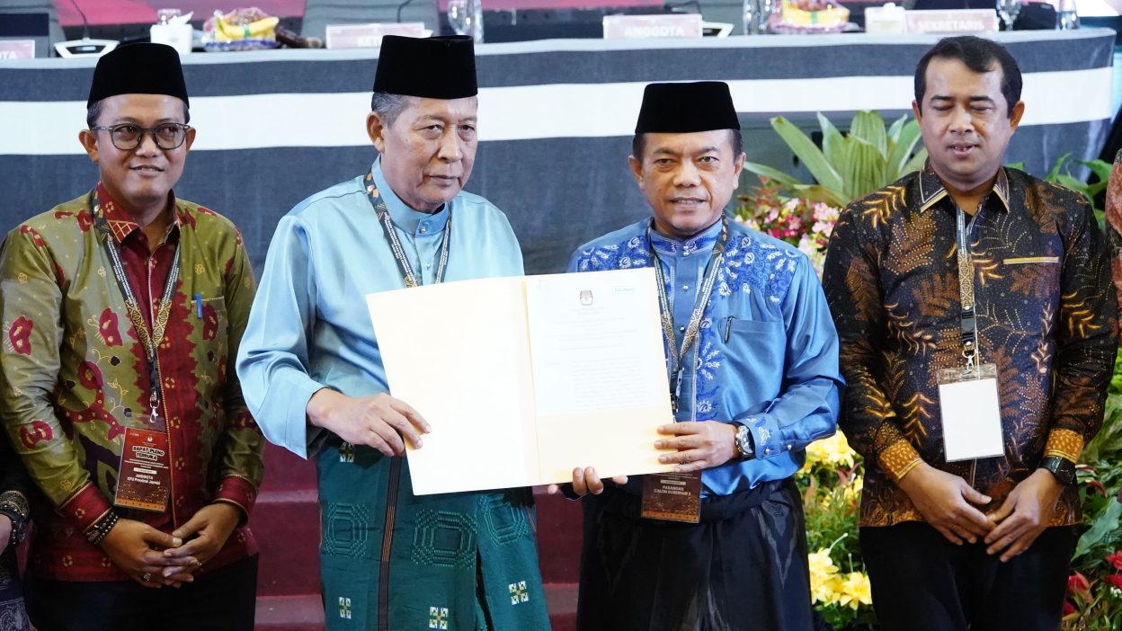 Acara pleno ini diakhiri dengan prosesi penyerahan Surat Keputusan (SK) Penetapan Gubernur dan Wakil Gubernur Terpilih, yang diserahkan langsung oleh Ketua KPU Jambi, Iron Sahroni kepada Gubernur Al Haris.