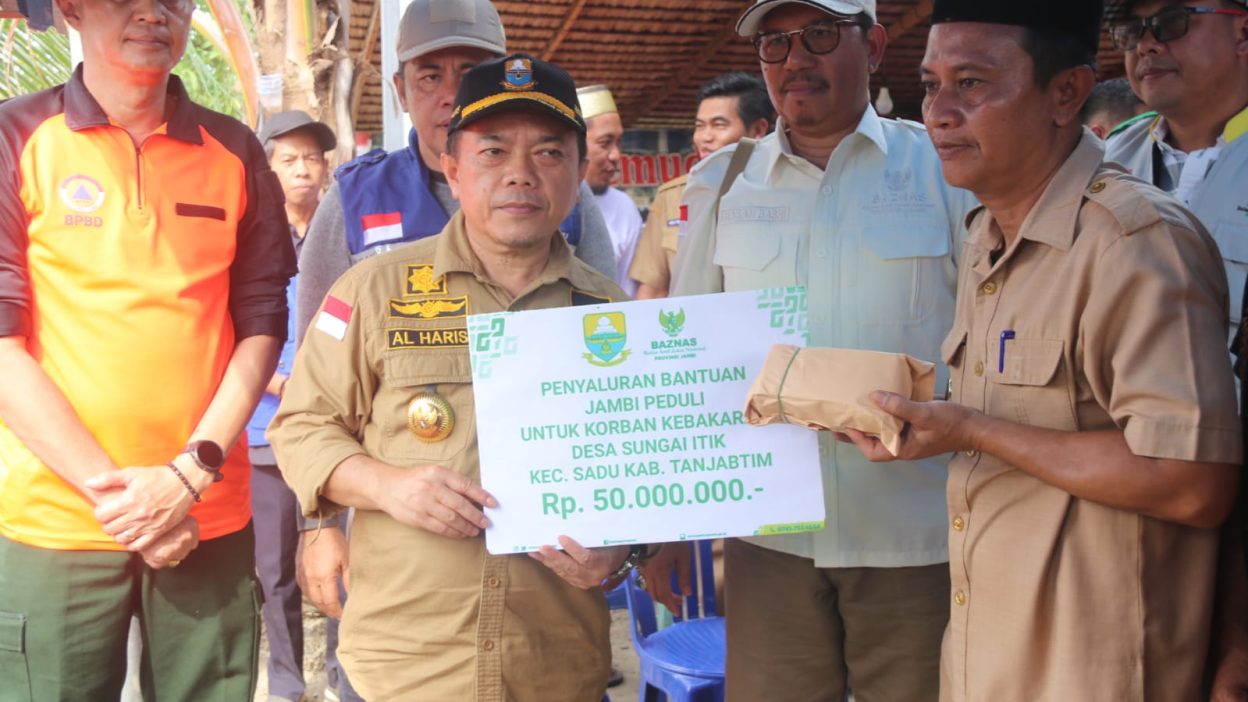 Kabargentala.id, Tanjabtim – Gubernur Jambi Dr. H. Al Haris, S.Sos., MH menyerahkan bantuan sosial kepada para korban kebakaran rumah yang terjadi di lorong Kamboja RT.02 Dusun Beringin, Desa Sungai Itik, Kecamatan Sadu Kabupaten Tanjung Jabung Timur, Senin (03/02/2024).