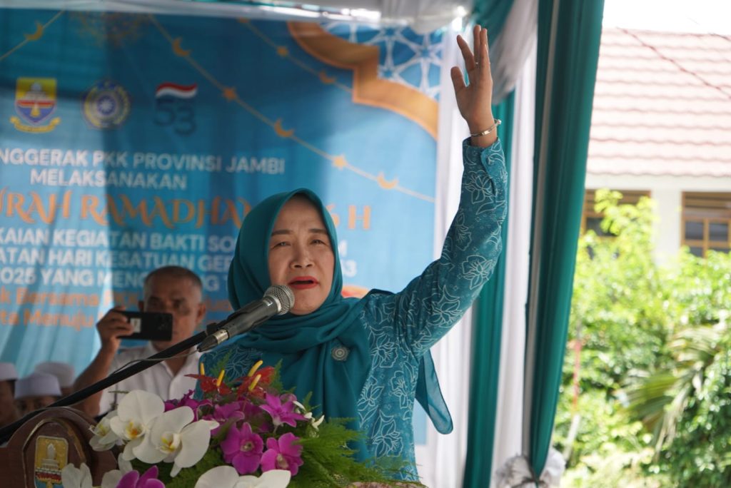 Hadir pada kesempatan tersebut Ketua TP-PKK Provinsi Jambi Hj. Hesnidar Haris, Ketua TP-PKK Kota Jambi dr. Nadiyah, Ketua DWP Provinsi Jambi Hj.Iin Kurniasih.