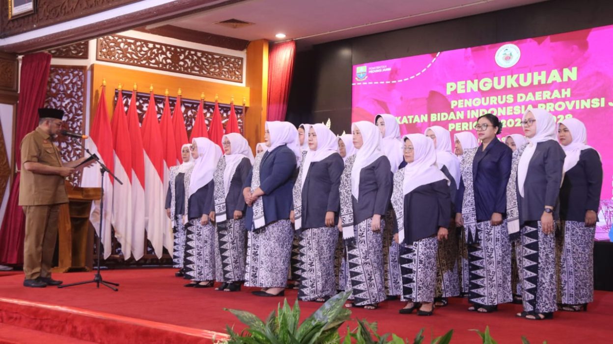 “Atas nama gubernur, saya mengukuhkan pengurus Ikatan Bidan Indonesia (IBI) daerah Provinsi Jambi periode 2023-2028, sesuai dengan arahan gubernur, yang mengamanatkan IBI sebagai mitra strategis pemerintah provinsi dalam upaya penurunan stunting, menjaga kesehatan ibu dan anak, serta mengurangi angka kematian ibu dan anak, dalam rangka peningkatan kualitas kesehatan secara keseluruhan,” ujar Sekda Sudirman.