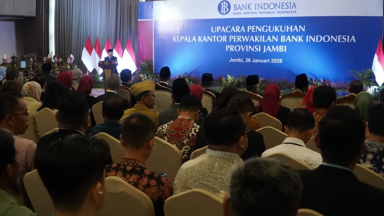 Kabargentala.id, Jambi – Gubernur Jambi Dr. H. Al Haris, S.Sos, MH mengemukakan, Pemerintah Provinsi Jambi berkomitmen bersama Bank Indonesia untuk terus mengendalikan inflasi melalui Tim Pengendalian Inflasi Daerah (TPID), termasuk menghadirkan toko inflasi di sejumlah pasar guna menjaga stabilitas harga bahan pokok, diberbagai daerah di Provinsi Jambi. Hal tersebut dikemukakannya saat menghadiri Pengukuhan Kepala Kantor Perwakilan Bank Indonesia Jambi, bertempat di Swiss-Belhotel Jambi, Senin (26/01/2026) pagi.